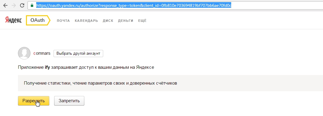 OAuth-токен Яндекс Метрики: и нажимаем