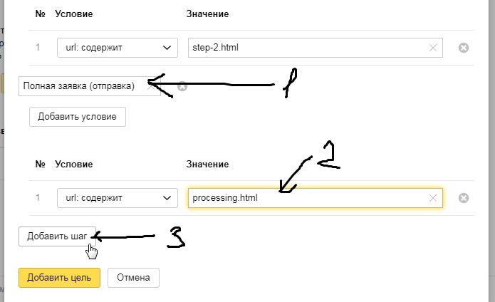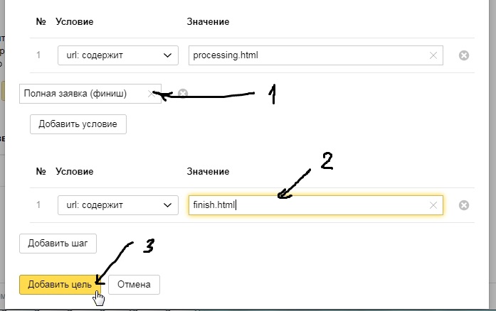 3. "Введите идентификаторы ... которых цель будет считаться достигнутой." вводим -